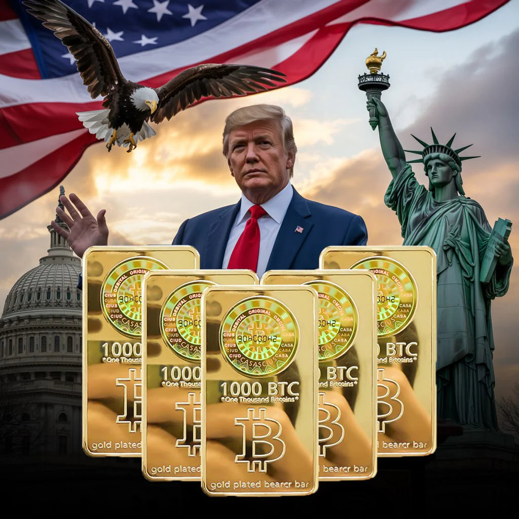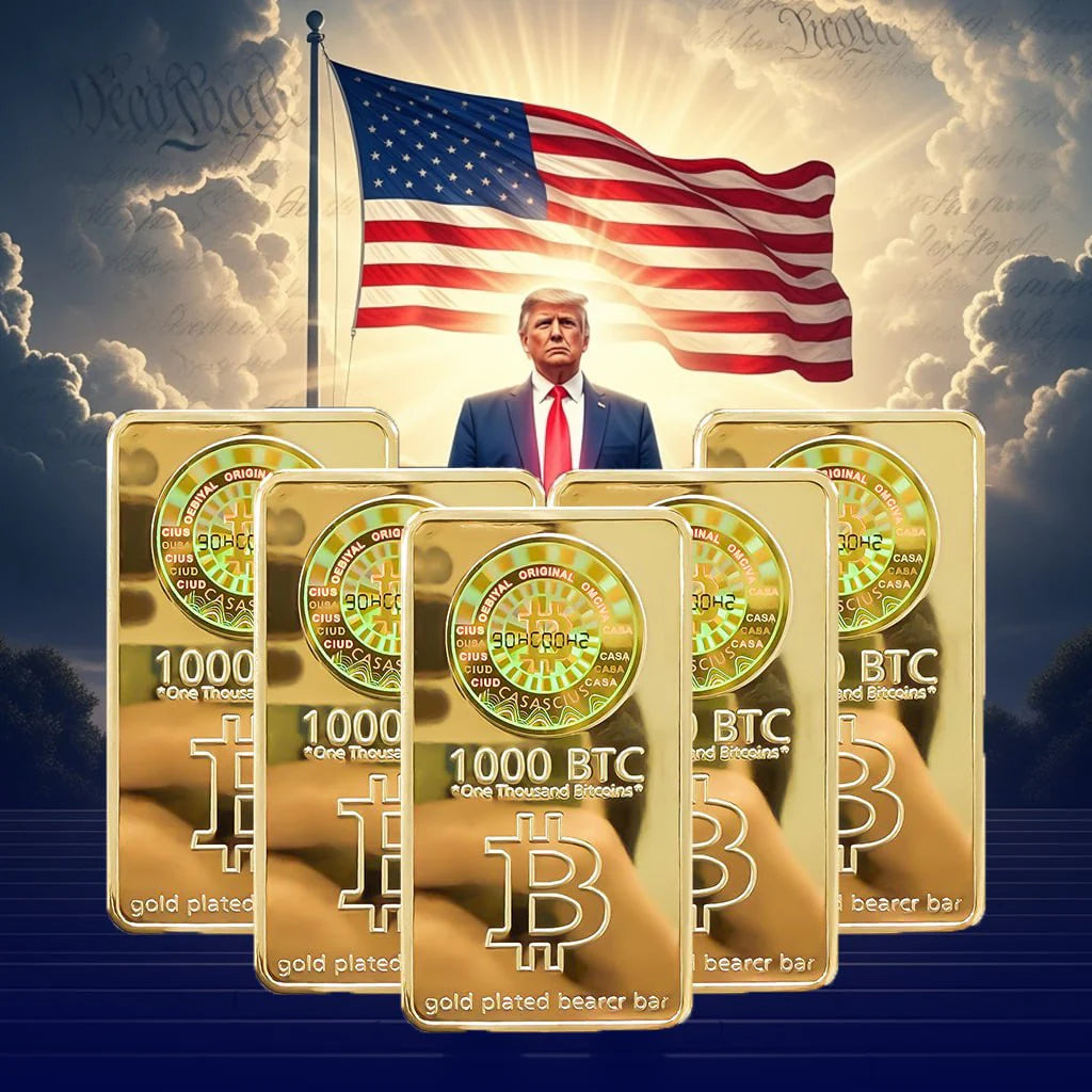 The Trump 1000 Bitcoins Gold Bar is a combination of classic American strength and the future of digital money.